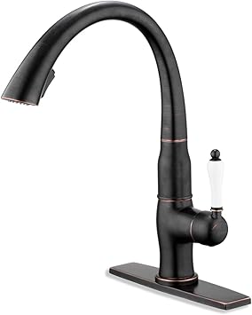 Kitchen faucets with pull down sprayer, farmhouse kitchen faucet oil rubbed bronze commercial modern high arc stainless steel single handle single hole for utility rv laundry sinks.